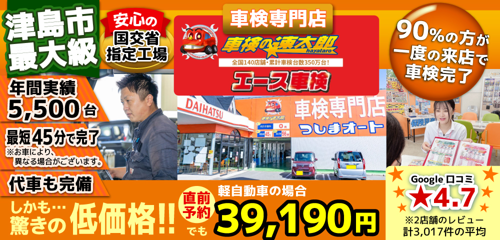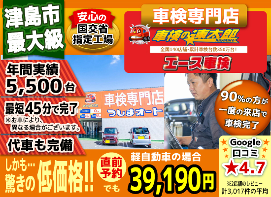 【車検年5千台】津島 愛西 あま 稲沢で格安車検3.9万